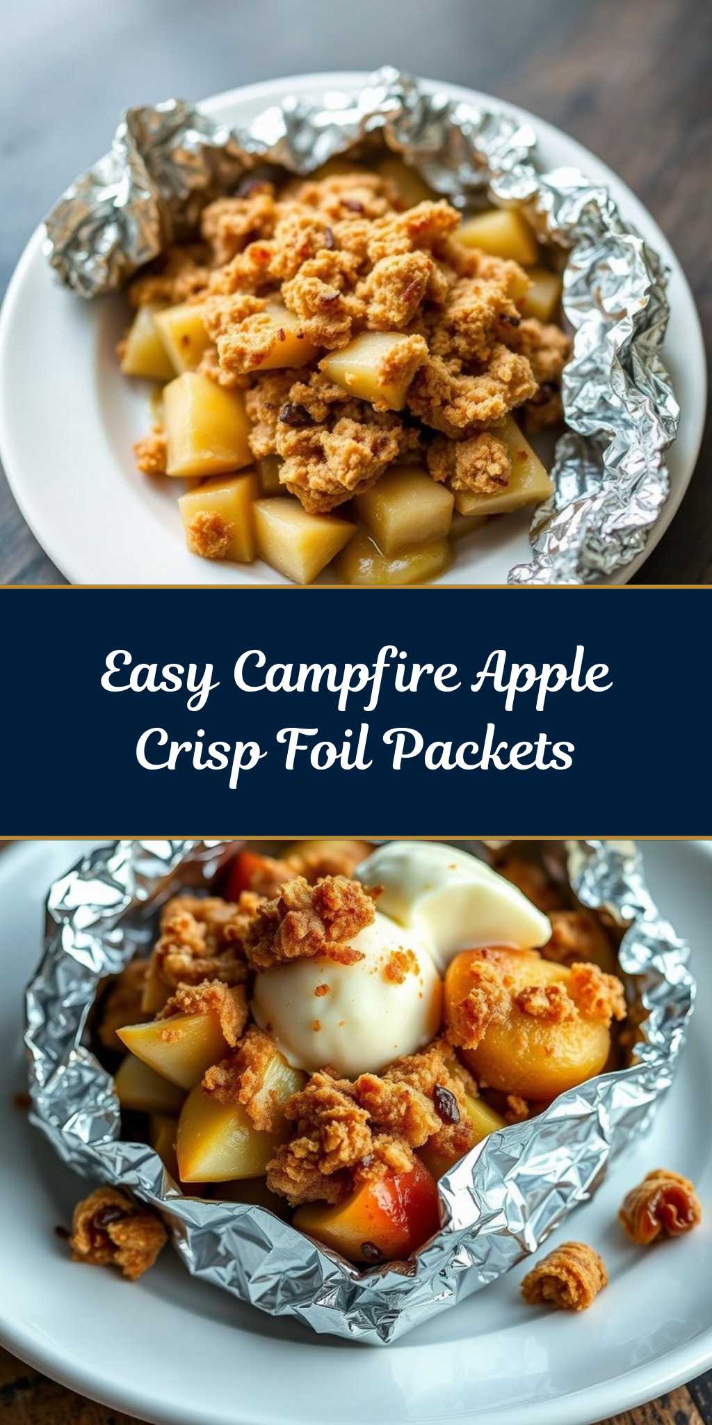 - Step 4: For the final touches, place the foil packets over the campfire, cooking for about 20 minutes, or until the apples are tender and the topping is crunchy and golden brown. To check for doneness, carefully open a packet (be cautious of the steam) and test the apples for tenderness. Serve warm, topped with vanilla ice cream or whipped cream if desired, for an extra-special treat.