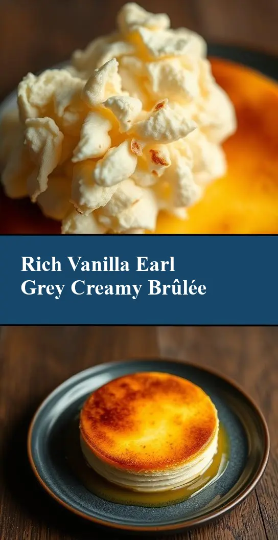 The main ingredients in this Vanilla Earl Grey Crème Brûlée include heavy cream, granulated sugar, large egg yolks, vanilla extract, and Earl Grey tea. The heavy cream provides the richness and creaminess, while the granulated sugar adds sweetness and is essential for the caramelized topping. Egg yolks are the backbone of the crème brûlée, giving it structure and richness. Vanilla extract enhances the flavor, and Earl Grey tea, with its bergamot notes, adds a unique and refreshing twist. For practical substitutions, you can use whole milk or a combination of milk and cream if heavy cream is not available, though the result might be slightly less rich. Additionally, if you prefer a different tea flavor, you can experiment with other herbal teas, though Earl Grey’s citrus notes are particularly well-suited to this dessert.