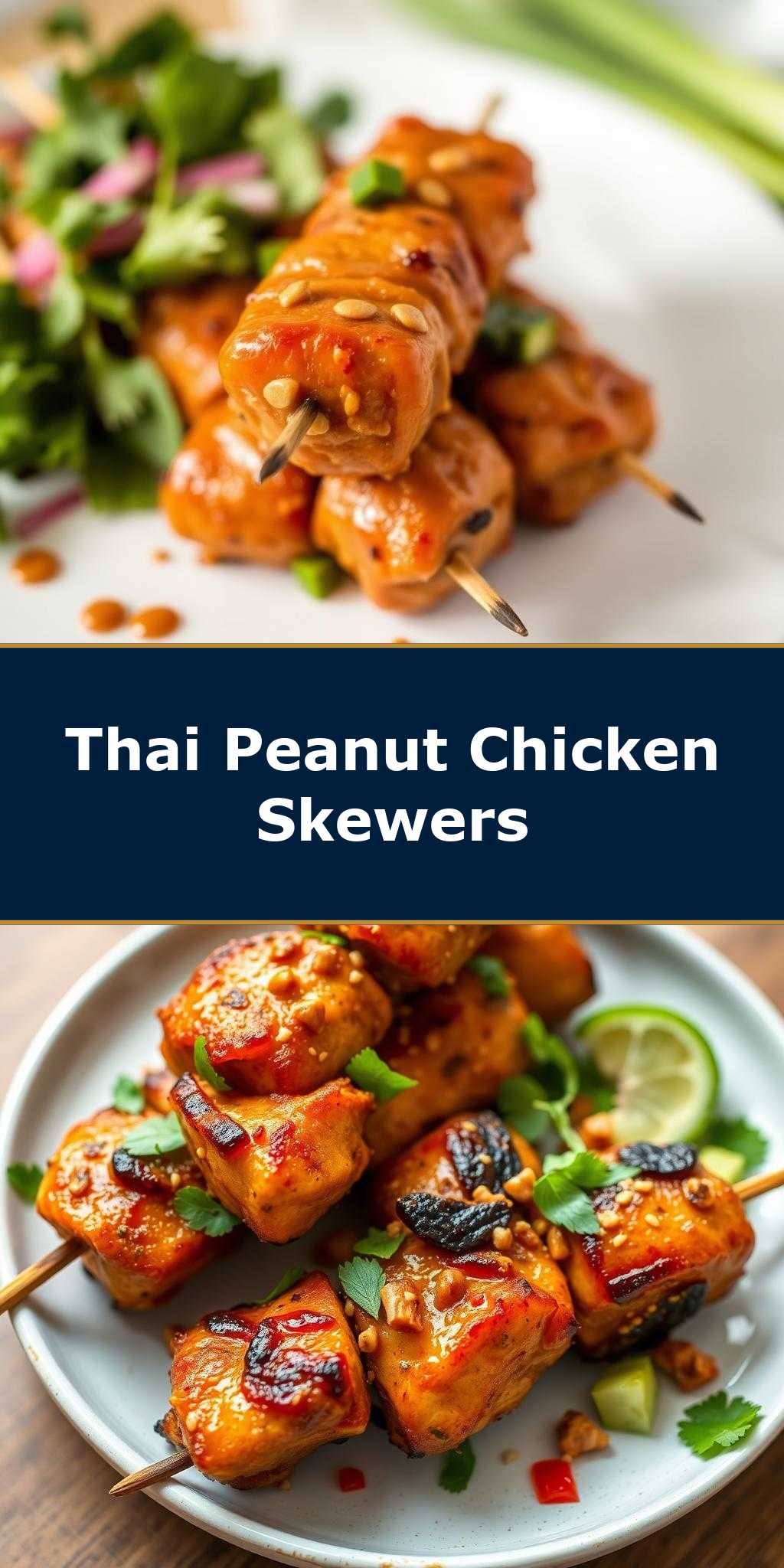 The foundation of our Easy Thai Peanut Chicken Skewers includes boneless, skinless chicken breasts, cut into bite-sized pieces for even cooking and ease of eating. A mixture of colorful bell peppers, onions, and mushrooms adds natural sweetness and earthy undertones, while fresh cilantro provides a bright, herbal note. The star of the show, however, is the peanut sauce, made with creamy peanut butter, soy sauce for depth, honey for a touch of sweetness, garlic for a punch of flavor, and a squeeze of fresh lime juice for acidity. For practical substitutions, you can use almond butter or cashew butter in place of peanut butter, and swap out the chicken for tofu or tempeh for a vegetarian option.